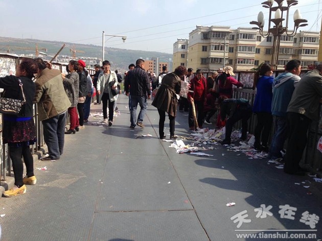 此次活动出动人员650余人,清理破损对联乱张贴乱喷涂200余条,清理杂物乱堆乱放1000余平方,同时还发放了《天水郡街道居民公约》、纪念爱国卫生运动65周年及全国文明城市创建宣传品300余份。