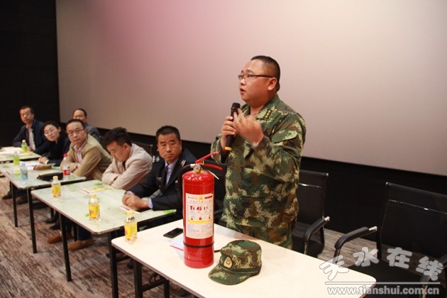其次由天水郡消防中队队长尹龙给大家讲解了居民日常生活当中,应如何注意火灾事故与应变自救能力及消防灭火器操作使用方法等安全防范知识。