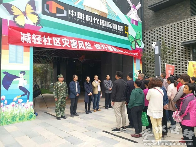 为了进一步提高应对地质灾害、地震、火灾灾害的紧急反应能力,使街道干部及辖区居民全面了解地质灾害、地震、火灾发生的有关知识,掌握应急避险、疏散和急救方法,从而提高紧急避险和自救互救技能,最大限度的减轻地震、火灾发生所带来的损失。5月10日,由街道组织干部及辖区居民共计100余人在佳水岸小镇中影电影院举行了地质灾害、地震和消防应急疏散演练。本次活动特邀区地震局、区国土局、区安监局以及天水郡消防中队的领导参加。