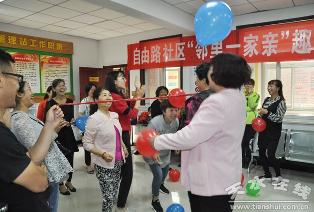 一是“邻里一家亲”趣味运动会。自由路社区组织辖区居民开展“顶气球”、“抢板凳”、“趣味乒乓球”、“夹弹珠等趣味运动比赛,通过邻里合作、友谊比拼的形式,拉近邻里距离,促进社会和谐。