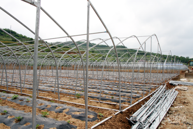 该项目于今年4月初开工建设,截至目前,大棚建设已初具规模。已完成办公用房8间,完成2000平米储藏室一座,完成钢架大棚100余个,部分大棚已开始进行封顶棚等收尾工作,其余大棚正在如火如荼建设当中。在部分大棚内,工人们已铺设好地膜,种植早熟马铃薯等绿色、无公害蔬菜。