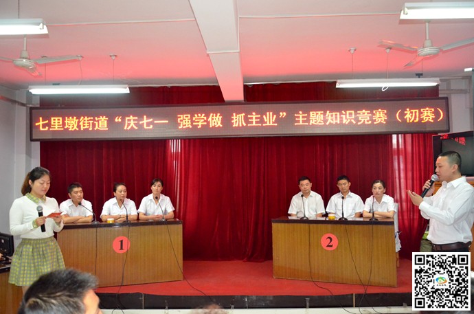 六、举办一台知识竞赛。为确保街道党员干部“两学一做”学习教育真学真做、入心入脑,七里墩街道特举办“庆七一 强学做 抓主业”主题知识竞赛。以《党章》、党规、党史及习近平总书记系列重要讲话精神为内容,分初赛、半决赛、决赛三个环节开展,街道社区、站所共组成12支代表队,36名选手参赛,历时一月,在全街道上下掀起一股“比学习、赶上游”的浓厚热潮。在加深党员理论知识的同时,帮助党员坚定了党性修养和理想信念。