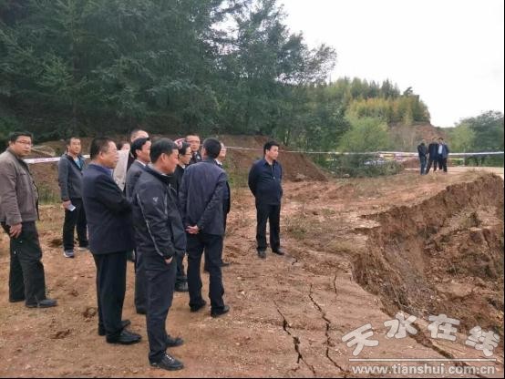 2017年10月10时20分齐寿镇稍平公路发生滑坡,该滑坡段位于齐寿镇齐寿山,其中心点地理位置坐标为:经度:34°21′01.64″,纬度:105°47′01.67″,该滑坡区域粘土含水量饱和,土质疏松,目前已形成长约40米,宽约10米,高约12米,位移约30米左右的滑坡,致使稍平公路完全中断,稳定性较差,直接威胁着齐寿镇稍平公路来往车辆和行人的生命财产安全。