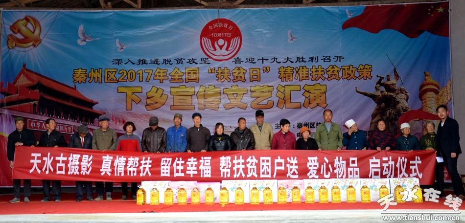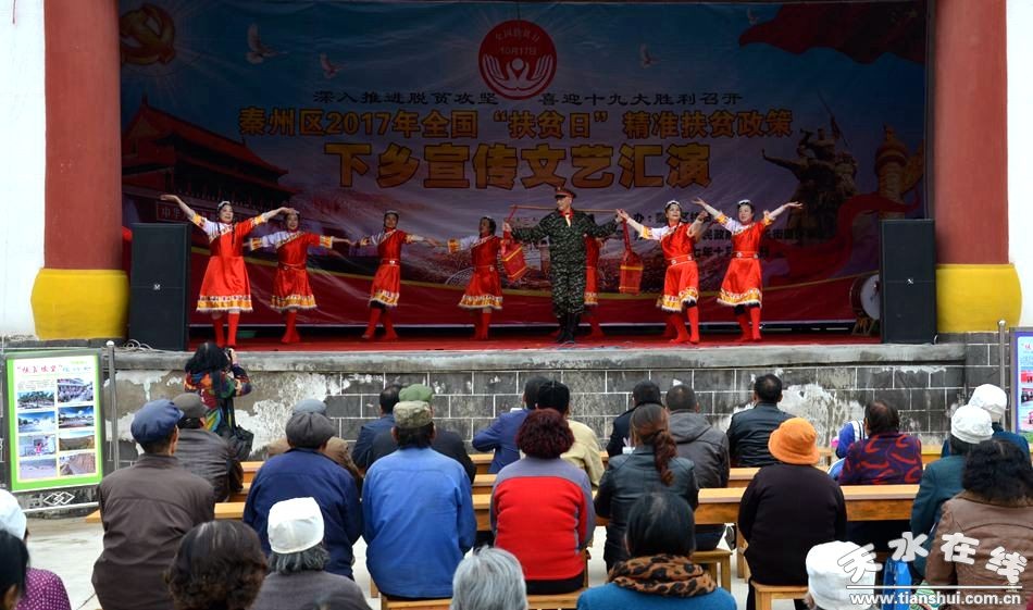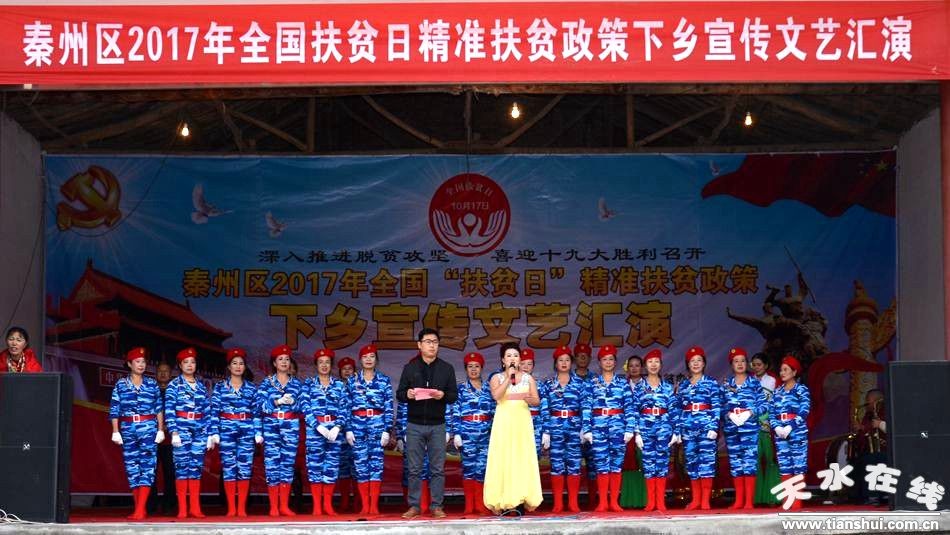 2017年10月17日是全国第4个扶贫日,也是第25个国际消除贫困日。为认真贯彻党的十八大和十八届三中、四中、五中、六中全会精神,坚持以习近平总书记扶贫开发战略思想为指导,深入落实省第十三次党代会精神,充分展示秦州区扶贫开发成就和经验,积极宣传先进典型,进一步动员全社会广泛参与精准扶贫,精准脱贫,为脱贫攻坚和党的十九大胜利召开,营造良好的氛围,秦州区扶贫办和中梁镇镇政府、西关街道办事处共同举办了此次文艺汇演。