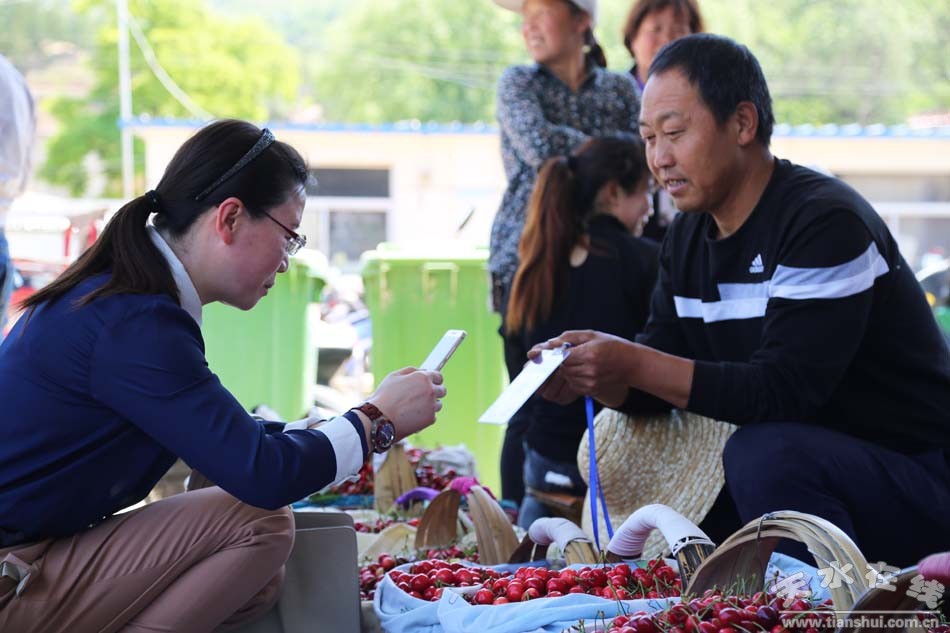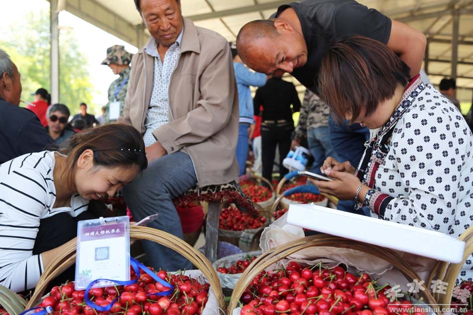 天水市秦州区玉泉镇烟铺村是一个现有176户800余口人的古老村落,这里属典型的半湿润半干旱温带气候,四季雨量适中,日照充沛,土层深厚,是种植大樱桃的最佳生长区域,自实施退耕还林以来,大樱桃种植成了该村唯一的支柱产业和收入来源。截止目前,区域内已栽培红灯、美早等樱桃品种23个1483亩。为了在烟铺村大力发展电商,近几年区上在烟铺村成立了电商服务点,主要推广让果农在淘宝、京东等电商平台开设网店,由于开网店遇到的手续复杂、需要掌握一定的计算机知识和产品同质化严重等问题,推广情况并不理想。为了让农民真正成为电商的主力军,通过网上销售增收致富,今年4月份,在天水市商务局、秦州区玉泉镇、秦州区商务局的指导下,天水在线联合烟铺村电商服务点,在烟铺村实施了“烟铺果农微信直销自家大樱桃”活动。在经过短暂的“夜校”培训后,烟铺村果农基本上都掌握了利用一部手机,通过微信直销自家樱桃的方法,取得了良好的销售成绩,达到了较高的增收效果。为此,天水在线和烟铺村电商服务点也总结出了级村电商的“烟铺模式”。