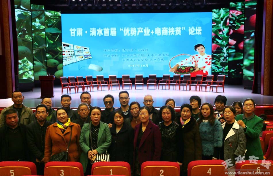 10月21日上午,甘肃•清水首届“优势产业+电商扶贫”论坛在轩辕大剧院拉开帷幕。在秦州区玉泉镇和区商务局的组织下,以盛产烟铺大樱桃,并在今年以微信直销大樱桃而闯出名堂的烟铺村,组团参加了甘肃·清水首届“优势产业+电商扶贫”论坛。
