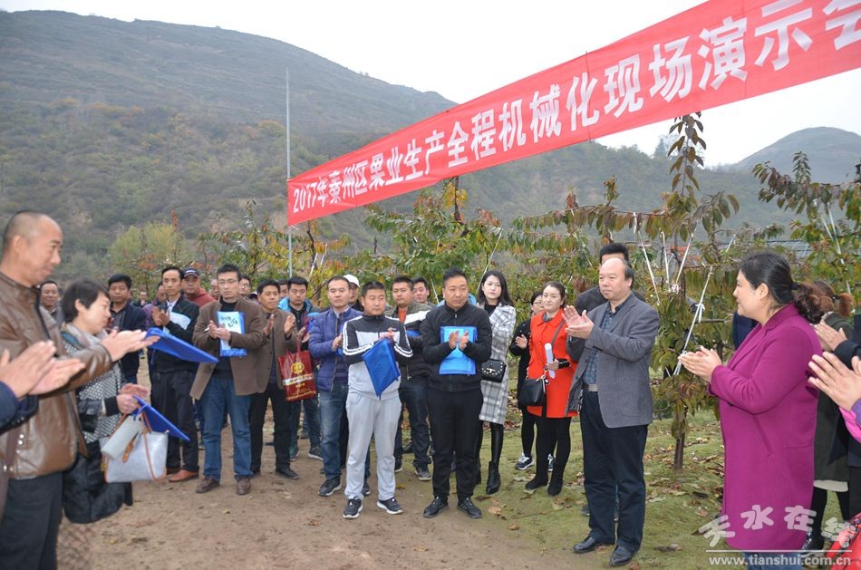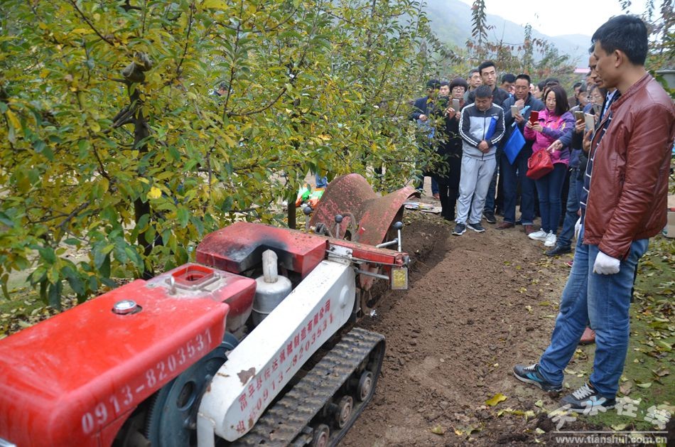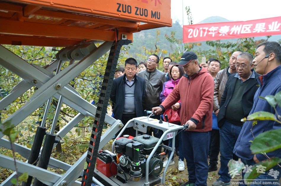 11月6日,由天水市农业局农机推广站和秦州区农业局农机管理站联合举办的秦州区果业生产全程机械化现场演示会,在秦州区太京镇平峪沟林果基地举行。秦州区果业局和来自全区的林果专业户、农机合作社负责人近百人参加了现场演示会。