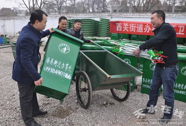 为切实改善生态和人居环境,提升辖区环境卫生面貌,近日,西关街道筹集了第一批30个垃圾桶,200个垃圾夹,6两垃圾手推车,在西桥头环卫局停车场内举行了环卫设施发放仪式,根据各社区需求,现场发放环卫设施,并对设施进行登记造册,确保这些环卫设施能够真正运用到最需要的区域。
