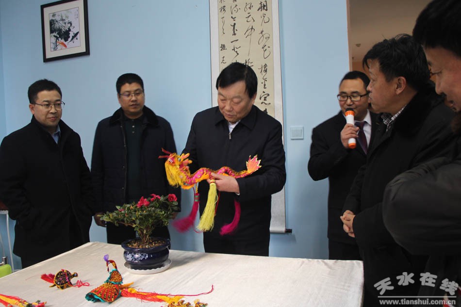 (参观社区居民手工作品)