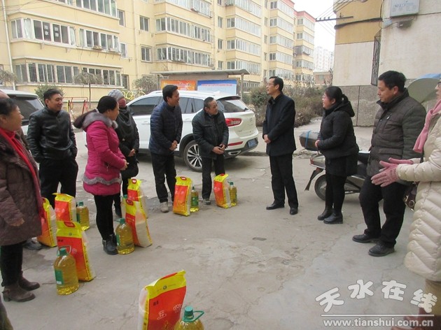为贯彻落实党的十九大精神,在春节即将来临之际,及时把党的关怀和温暖送至社区贫困家庭中,让他们过一个快乐、祥和的春节。2月7日,王家磨社区联系驻辖区单位天水市卫校、王家磨社区卫生服务中心、天水市第三人民医院共同开展以“慰问驱走严寒、祝福更添温暖”为主题的“暖冬行动”。
