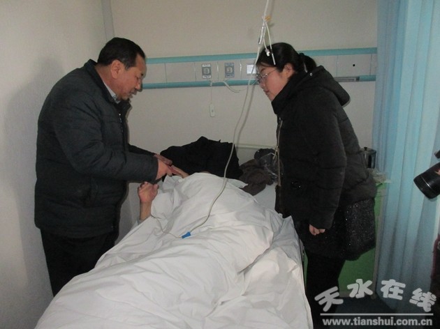 在辖区困难老党员王善荣身患疾病,目前尚在天水市四Ο七医院接受治疗,天水郡街道党工委副书记马文和社区党委书记吕艳红亲手将慰问金送到了王善荣手中,鼓励其生活再苦再难都不要失去信心,要保持乐观的心态,祝福他早日康复,新年快乐。