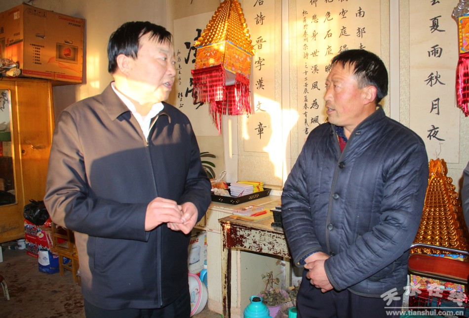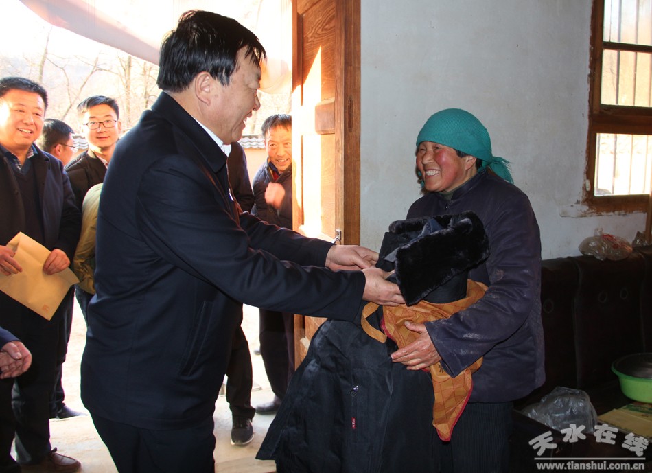 秦州区外宣办2月13日讯(记者张永宏)12日,市委常委、秦州区委书记雷鸣带领区委办、民政、水务等部门负责人,深入到皂郊、牡丹等镇走访慰问困难群众,给他们送去慰问品和慰问金,并向他们致以新春的问候和节日的祝福。