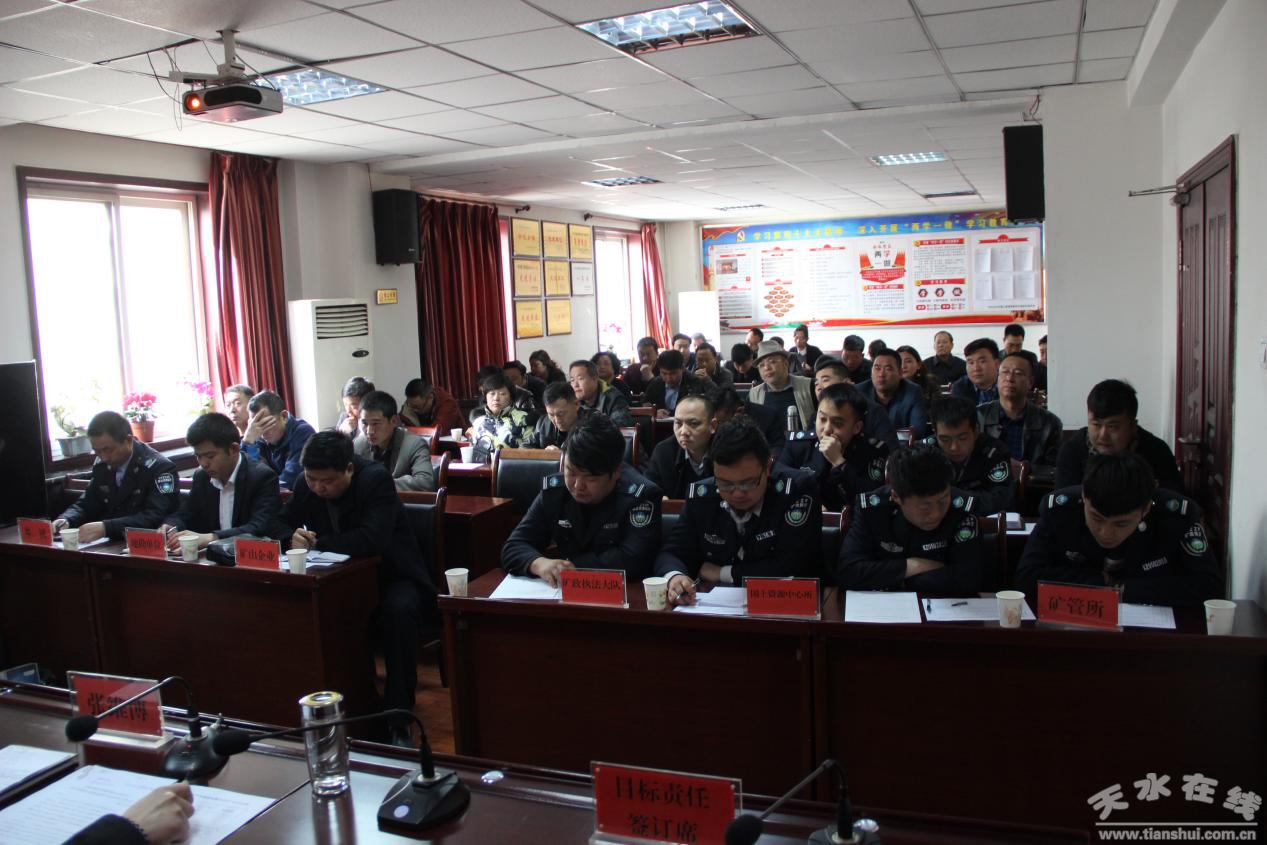 3月21日,天水市国土资源局秦州分局组织召开了2018年矿产资源管理暨安全生产工作会议,秦州国土分局执法人员,全区探、采矿权企业、地勘单位负责人等60余人参加会议。
