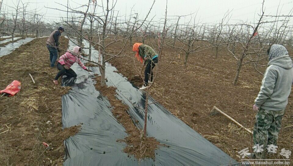 近日,在三湾村老果园里,区果业局技术人员在果农们指导下给果树铺膜。区果业局技术人员李春琴说,“春节过后,每天我们从早上八点到下午六点,对三湾村老果园改造的覆膜、上化肥以及修建进行指导。通过这一段时间的技术指导,今年果园收入预计将会有更大的增长。”