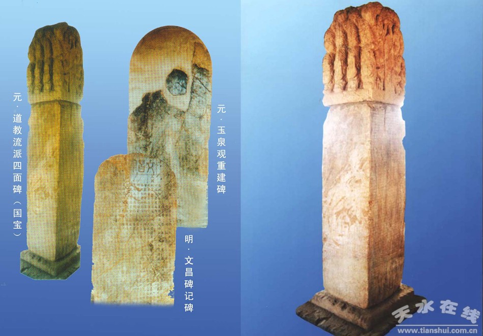 在众多的碑石中,尤以元世祖忽必烈褒封制词四面碑及元代大书法家赵孟頫草书诗碑四方最为珍贵,分别为“国宝”级碑石和玉泉观的镇观之宝。此外,元代石碣和元代砖雕也有极高的史料价值。