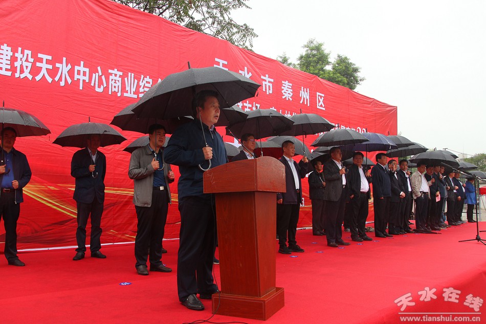 市委常委、秦州区委书记雷鸣出席仪式并宣布项目开工。甘肃省建设投资(控股)集团总公司副总经理、甘肃建总置业发展有限公司董事长束水龙,市发改委副主任、市政府重大项目办主任李凤奇,甘肃第五建设集团公司党委常委、总经理张克诚,市财政局、市国土局、市住建局、市环保局、市规划局、市供电公司相关负责人以及区政协主席宋丕林等区四大组织在家领导出席了开工仪式。
