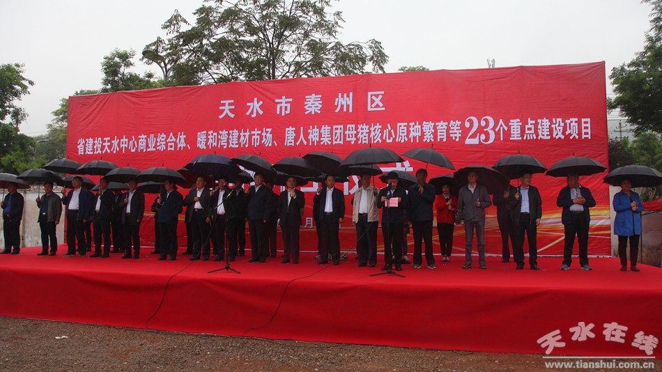 秦州区外宣办5月21日讯(刘可 赵锋)21日上午,省建投天水中心商业综合体、唐人神集团母猪核心原种繁育、暖和湾建材市场等23个秦州区重点建设项目,在瀛池大桥东侧项目建设选址区域,举行了集中开工仪式。此次集中开工标志着秦州区今年确定的231项省、市、区列重大项目全面开工,对扎实推进全区重点项目建设工作具有积极的示范带动作用。