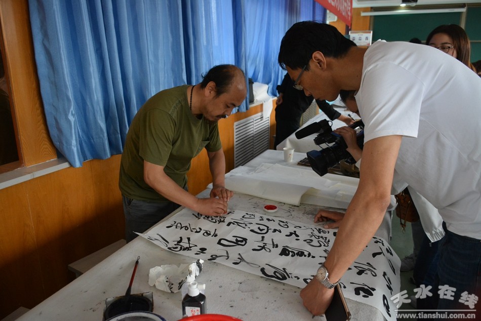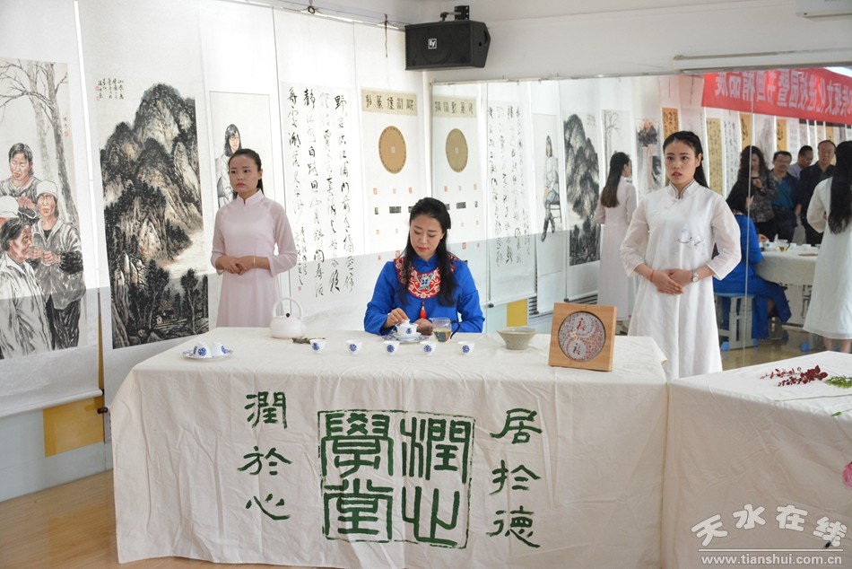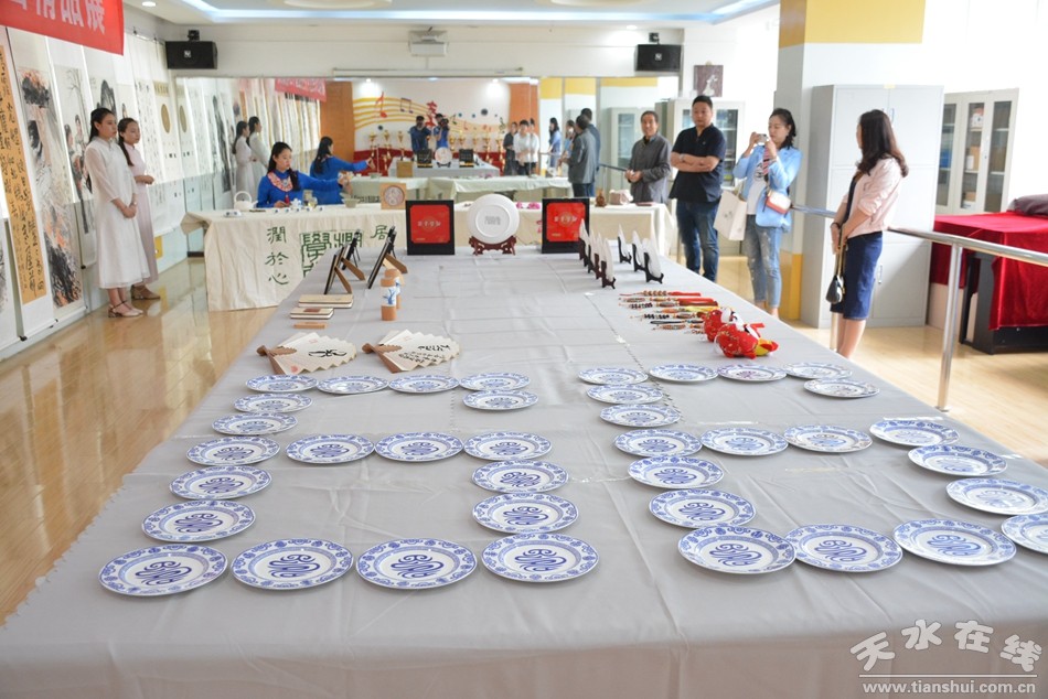 上午9时,天水市知名书画专家、陶泥艺术传承人、剪纸及民俗非遗专家、老艺术家等就已来到学校,向全校师生现场交流书画、剪纸、茶艺等高超技艺,展示精美的创意作品,并深入课堂,为学生做非遗知识讲座和剪纸艺术互动。这一系列传统文化活动,受到全体师生的欢迎和广泛好评。同学们一致称赞说享受一道丰盛的文化“大餐”。