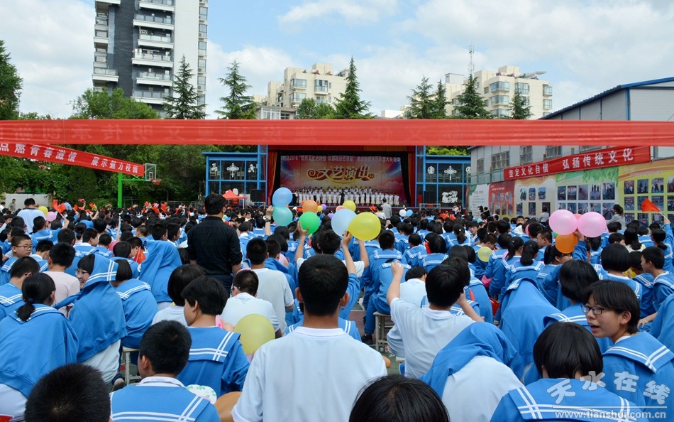 5月18日下午,由秦州区委宣传部、秦州区文广局主办,天水市逸夫实验中学、天水市秦州区文化馆承办,天水市关心下一代工作委员会、天水市教育局、秦州区关心下一代工作委员会协办的秦州区2018“传统文化进校园·非遗知识进课堂”走进天水市逸夫实验中学大型文艺演出隆重举行。