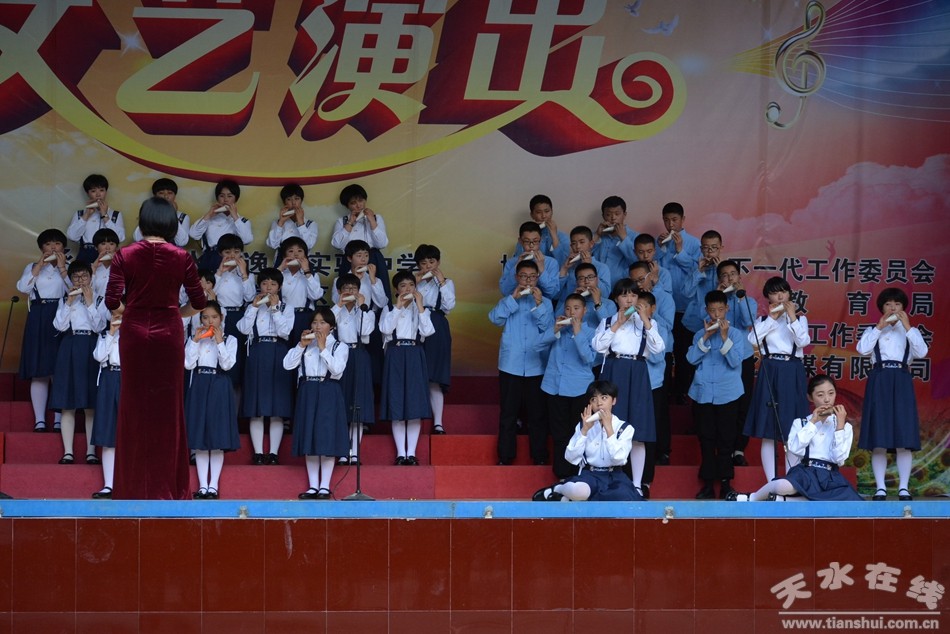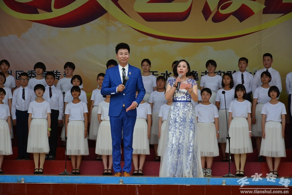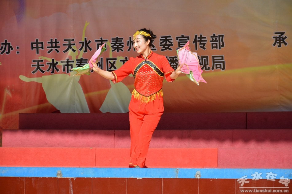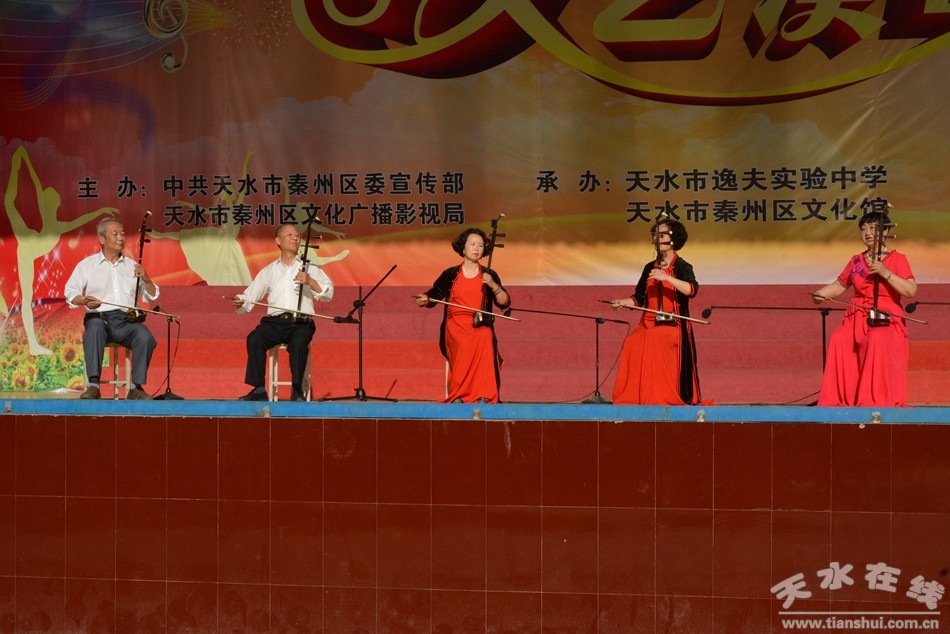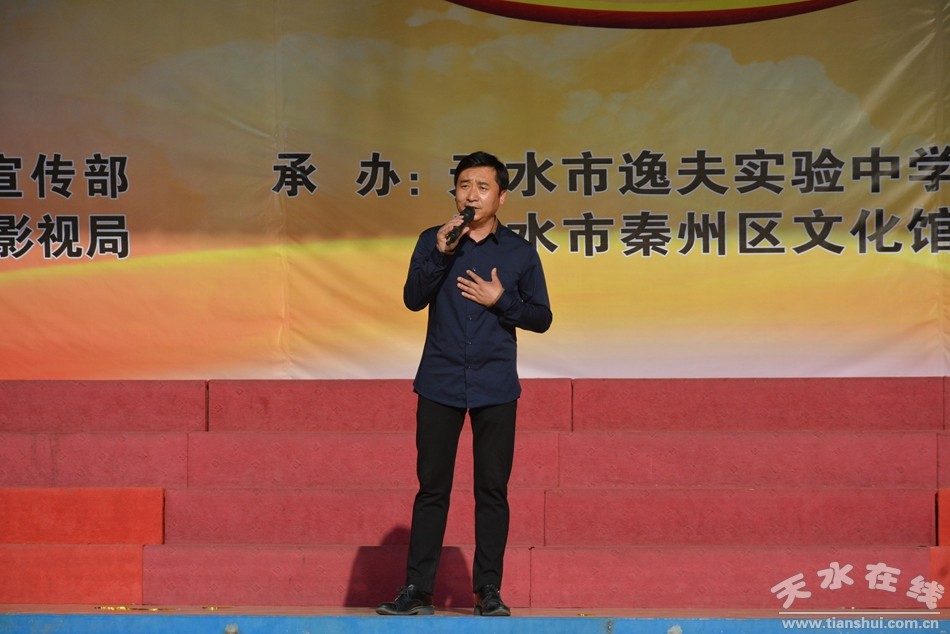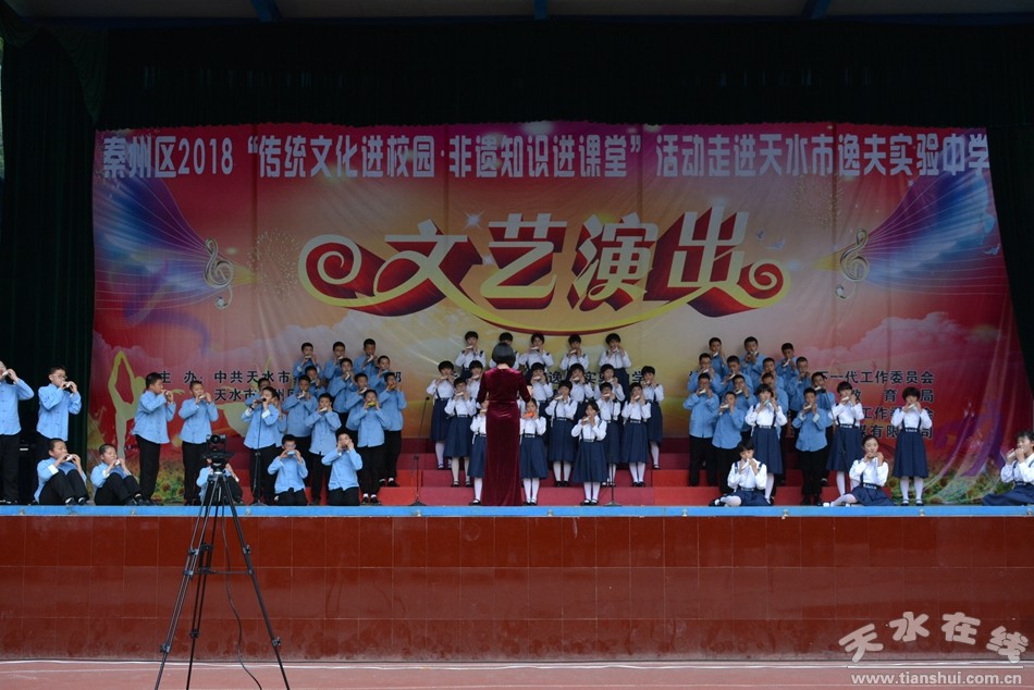 下午4时许,大型文艺演出正式开始。活动由秦州区文广局局长秦毅敏主持。秦州区政府副区长罗增芳、天水市逸夫实验中学校长沈建玲分别致辞。秦州区文化馆馆长赵晖介绍了秦州区“传统文化进校园•非遗知识进课堂”活动开展情况。