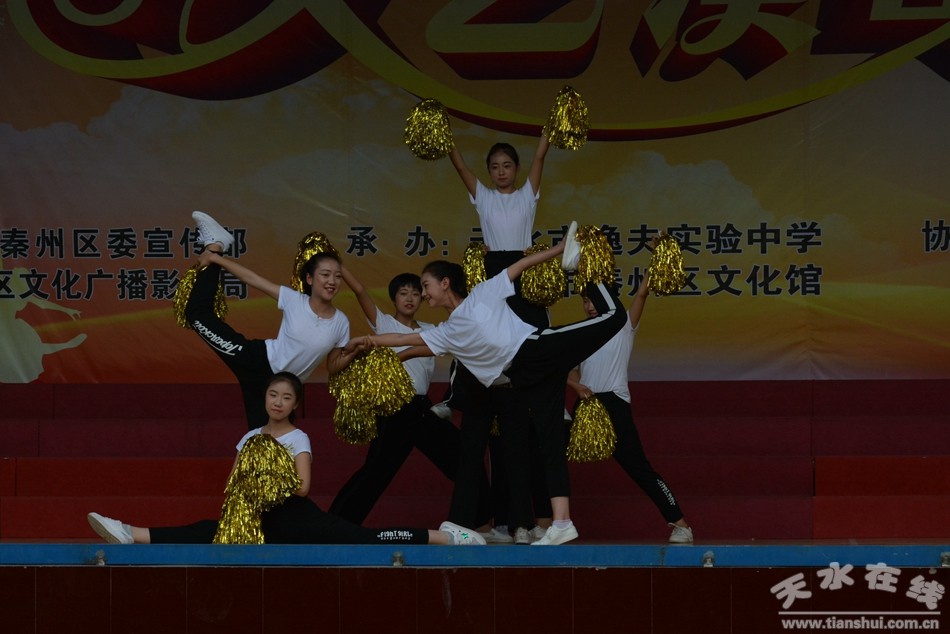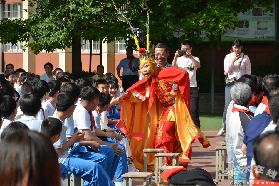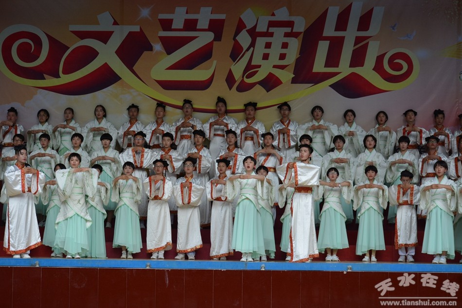 文艺演出中,由秦州区文化馆精心组织的传统艺术秦腔、手绢绝活表演、孙悟空表演秀、花式篮球、独唱、同学表演的合唱、健美操、陶笛、吟诵等节目等深受现场师生喜爱,掌声、喝彩声和尖叫声一浪高过一浪。
