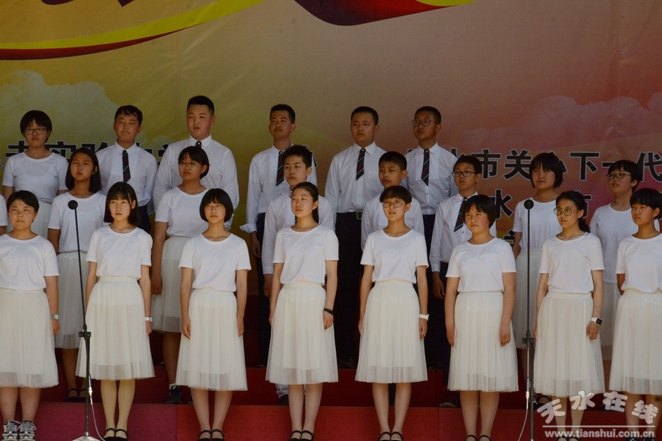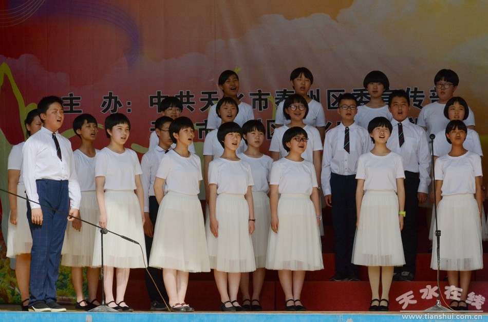 (合唱《唱支山歌给党听》《母亲的微笑》表演:天水逸夫实验中学百泉合唱团)