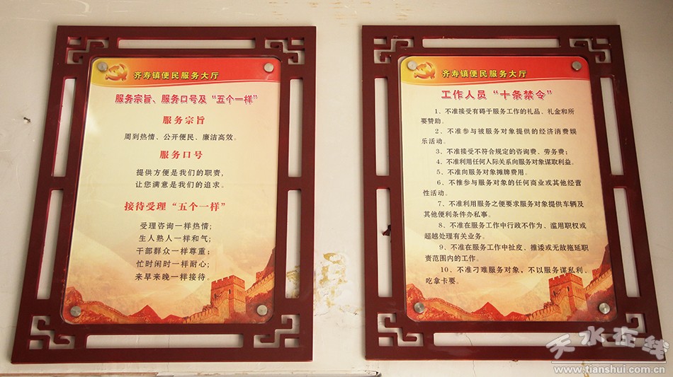 政务大厅是政府解决群众实际问题,为群众办实事的对外窗口,齐寿镇采取一线工作法,制定了依法行政“十不准”、作风建设“五个一”、政策管理“六不让”工作制度,切实做到了民服务“最多跑一次”的政务环境,解决群众办事难的问题。