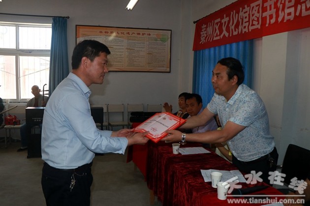 天水镇、娘娘坝镇党委政府非常重视总分馆制建设,对镇综合文化站近年来的工作给予了充分肯定。天水镇党委书记郑明在讲话中强调,实行总分馆制,是乡镇综合文化站迎来的又一个春天,对解决文化站“泾渭分明”的管理现状和公共文化服务“最后一公里”的最佳措施,镇上将大力支持总分馆建设。天水镇、娘娘坝分馆馆长做了表态发言,两镇领导和区文广局、区文化馆领导共同为秦州区文化馆图书馆分馆进行了揭牌。镇分馆还向村级服务点颁发了聘书。仪式之后,天水镇分馆和娘娘坝镇分馆进行了文艺演出。