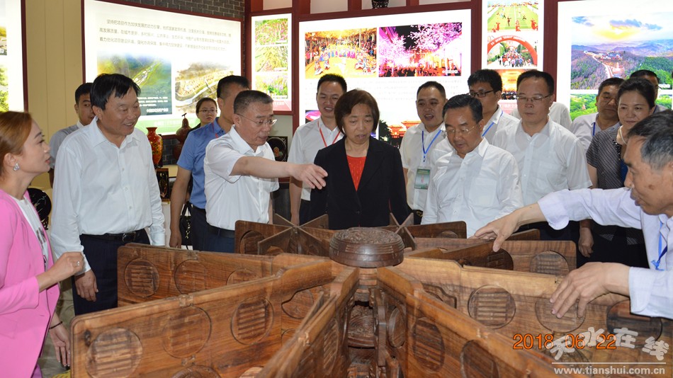 (节会期间,全国政协副主席、台盟中央主席苏辉,省委副书记、省长唐仁健等领导参观秦州展馆)