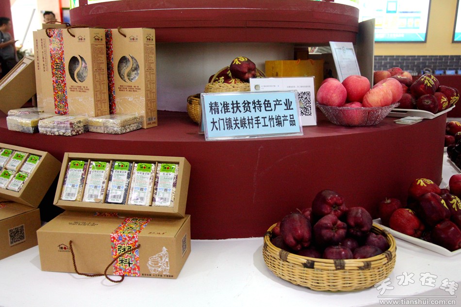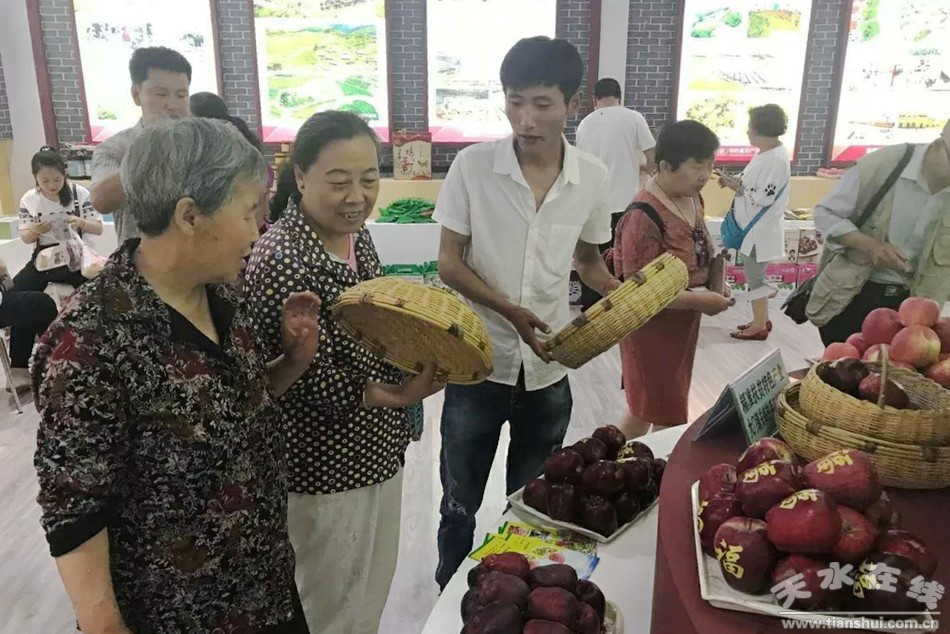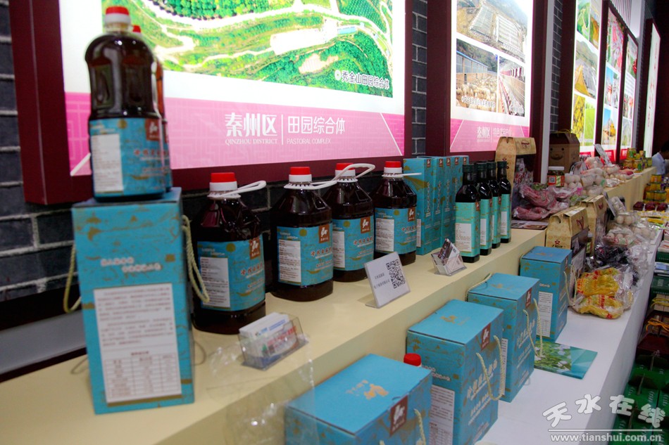 展馆中,代表秦州区工业、农业、文化旅游、商贸流通等各个领域发展成果的商品琳琅满目,特别是电商扶贫特产因其物美价廉成为了博览会中的亮点之一。
