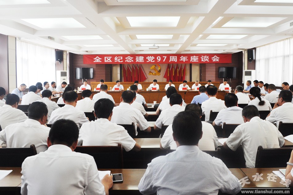区委副书记、区长刘文玺在主持会议时要求,全区各级党组织和广大党员要以庆祝建党97周年为契机,紧密结合“转变工作作风严明工作纪律改善发展环境建设年”活动,牢固树立“四个意识”,坚定“四个自信”,持续深化“两学一做”学习教育常态化制度化,坚持学有成效,做有实绩。要进一步全面加强党的基层组织建设,聚焦主线,强化举措,落实各项党建重点任务;要进一步发挥先锋模范作用,提振精神、担当作为,以实际行动为全区经济社会高质量发展、建设幸福美好新秦州凝聚正能量、作出新贡献。