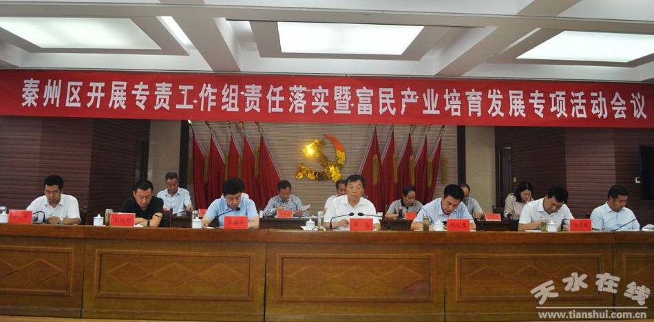 会议宣读了《秦州区开展专责工作组责任落实和富民产业培育专项活动实施方案》,明确了各专责工作组职责,对全区精准扶贫富民产业培育发展专项活动进行了安排部署。区住建局、区农业局及藉口镇主要负责人作了表态发言。