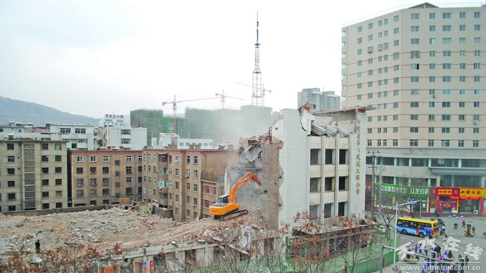 位于市六中南侧的原秦州区教体育办公楼因存在安全隐患于2018年初拆除后,如今原址已经建成了城市绿地,拓宽了城市空间。