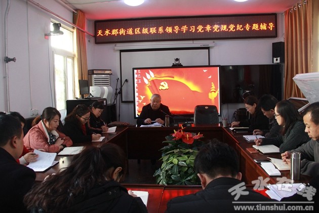 11月28日下午,秦州区委常委、政法委书记刘小平同志赴包抓联系点天水郡街道开展学习党章党规党纪专题辅导,街道党工委在家班子成员、街道全体党员干部70余人参加了会议。
