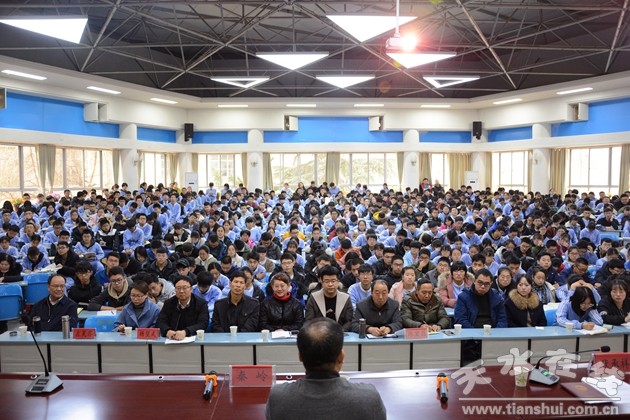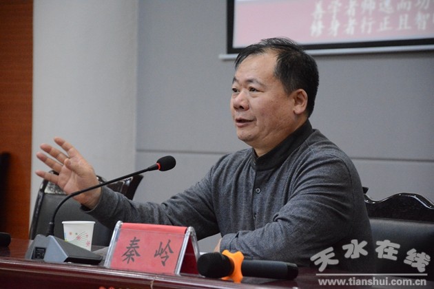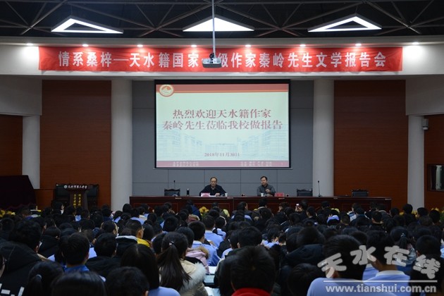 11月30日上午,秦岭先生又到天水市三中报告厅作了题为《高考作文写作及当下青少年文学创作》的报告会,会议由区人大常委会副主任伏承祥主持。区文联、区教体局、部分区作协会员及市三中高三级教师和学生代表共计700余人参加报告会。