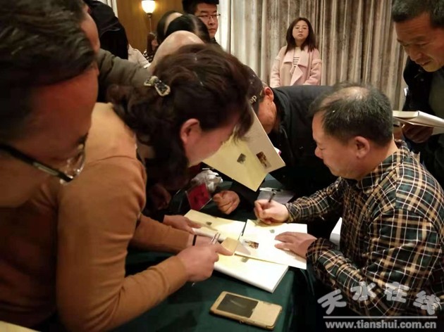 会议结束后,在市三中会议室召开座谈会,市三中高三语文教师、学生代表及部分区作协会员参加。秦岭先生分享了自己的创作体会,并就高考作文写作与教师和学生进行了交流,并签名赠书,祝愿市三中能够培养出更多优秀的人才,去建设更好美丽的天水。