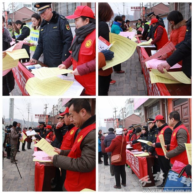 三是营造氛围抓宣传。街道社区充分利用微信公众平台、电子显示屏、宣传公示栏、拉条幅、摆放展板、设立咨询点、发放倡议书等方式,发挥“小红帽”、“红马夹”、“五彩丝带”、“党员先锋行”等志愿者的积极作用,广泛开展创建文明城市宣传活动,向辖区居民群众、沿街门店、居民小区发放和张贴《天水市创建全国文明城市倡议书》、《天水市市民文明公约》和《天水市秦州区人民政府关于开展城区背街小巷老旧小区环境卫生综合整治工作的通告》。引导辖区各行各业、居民养成良好的卫生习惯,树立文明社区新风尚,使得“环境整治,人人有责”的意识深入人心。