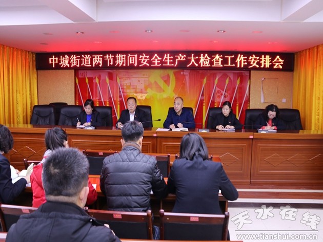 为切实加强岁末年初和节日期间的安全生产工作,不断增强辖区单位和居民的安全意识,秦州区中城街道认真贯彻落实区委、区政府相关会议精神,召开2019年“双节”期间安全生产大检查工作会议,并立即开展了安全生产大检查活动,确保辖区单位和居民平安欢度元旦佳节。