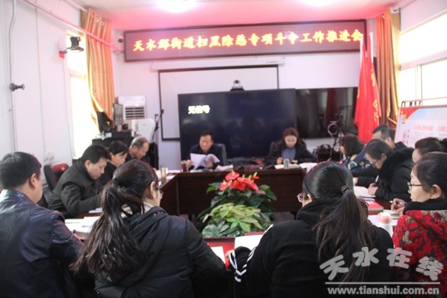 为了认真贯彻落实市、区扫黑除恶专项斗争工作会议精神,统一党员干部思想认识,迅速掀起扫黑除恶专项斗争新高潮,2月20日下午,天水郡街道召开扫黑除恶专项斗争工作推进会,街道班子成员、站所长、社区书记、综治专干30余人参加了会议。