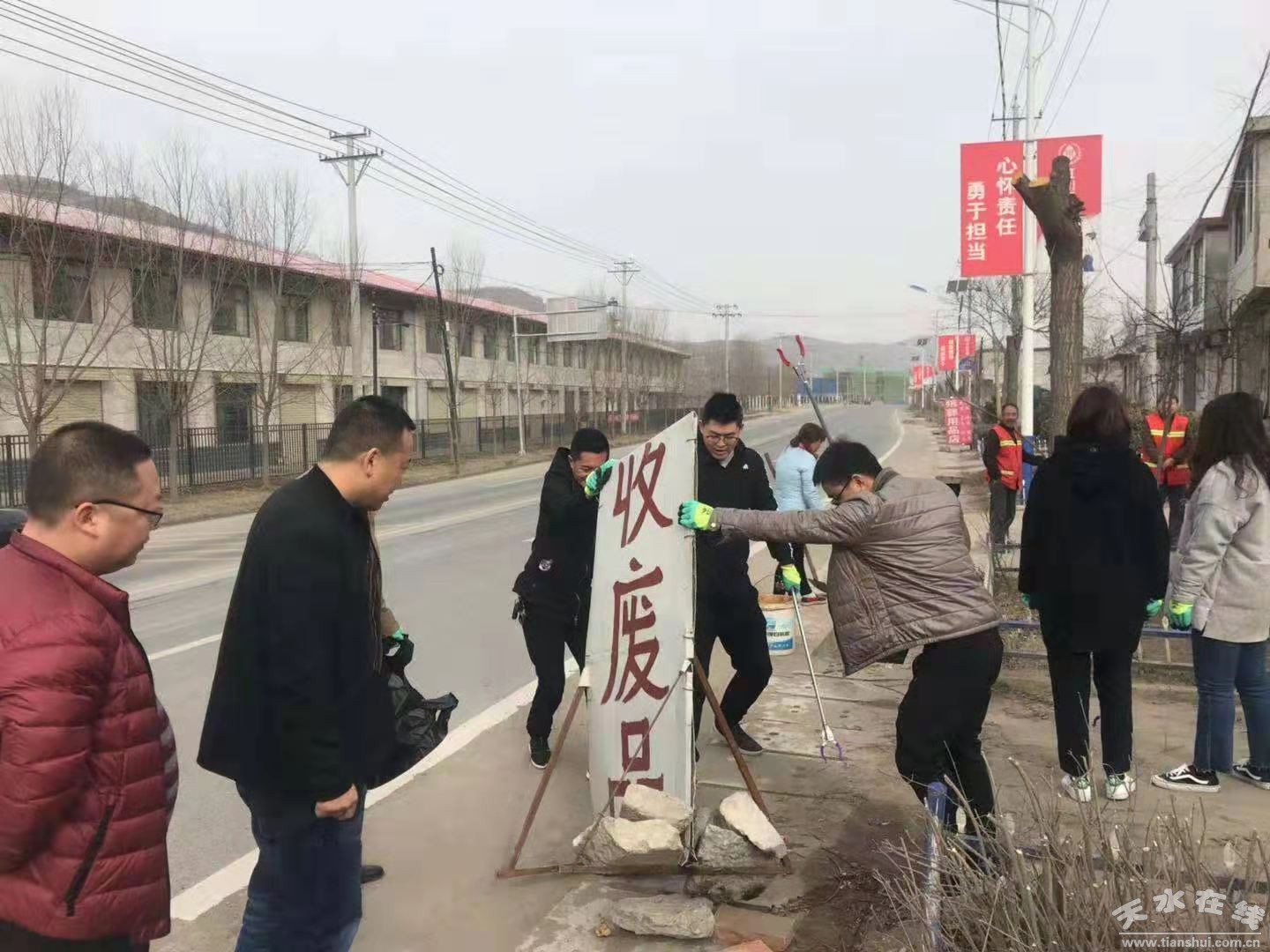 此次活动在镇党委的统筹安排下,采取“分人分组分路段”的方式,划分了为10个工作组,10个清理路段,明确任务,靠实责任,“拉网式排查,地毯式清理”。针对国道沿线和河床内环境卫生方面存在的突出问题和薄弱环节,特别是露天垃圾、建筑垃圾、破旧广告、塑料制品、废弃轮胎、废旧物品、柴堆杂草的乱堆乱放、占道经营等问题进行集中清理和整顿,并积极动员、倡导农户和商户主动清理门前垃圾杂物,共同参与环境整治。一是对G310国道贾家寺至皂郊新村路段国道两侧排水渠垃圾,广告牌占道摆放,废弃轮胎、垃圾杂物乱堆乱放进行了彻底的整顿;二是对皂华路店镇路口至潘集寨路段沿线村庄,道路两侧的柴堆杂草,露天垃圾,牛皮癣小广告进行了全面的清理;三是动员教育农户、商户主动清理门前垃圾杂物,定点堆放生产生活垃圾,养成良好的卫生习惯;四是针对一些容易出现卫生情况反弹的区域设立了警示标牌4块。