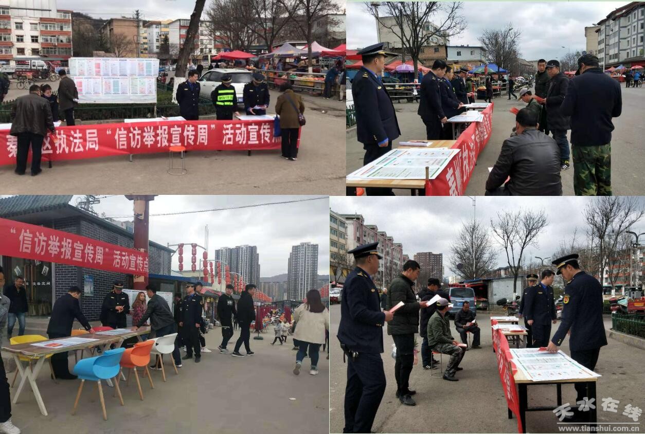 为了认真贯彻落实《中华人民共和国监察法》,不断加大纪检监察信访举报宣传引导力度,连日来,秦州区执法局按照全区“信访举报宣传周”活动统一安排部署,开展了以“信访举报知识我知道”为主题的集中宣传活动,掀起了“信访举报宣传周”活动的新高潮。