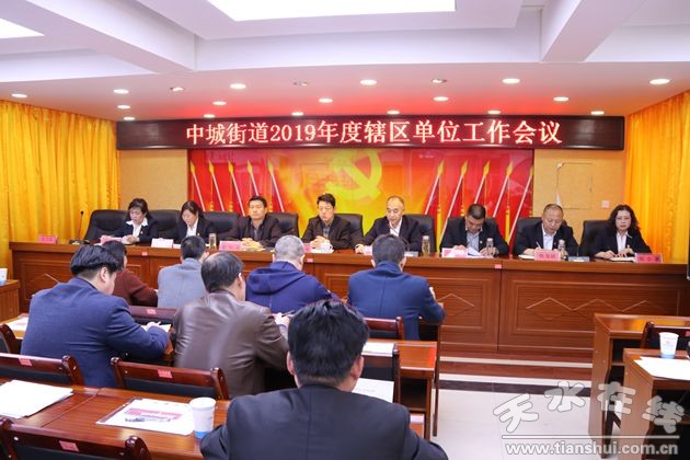 3月26日下午,秦州区中城街道召开2019年辖区单位工作会议,街道领导班子、社区站所负责人、全体干部职工及辖区单位负责人共计120余人参加会议,会议由街道办事处主任樊建宝主持。