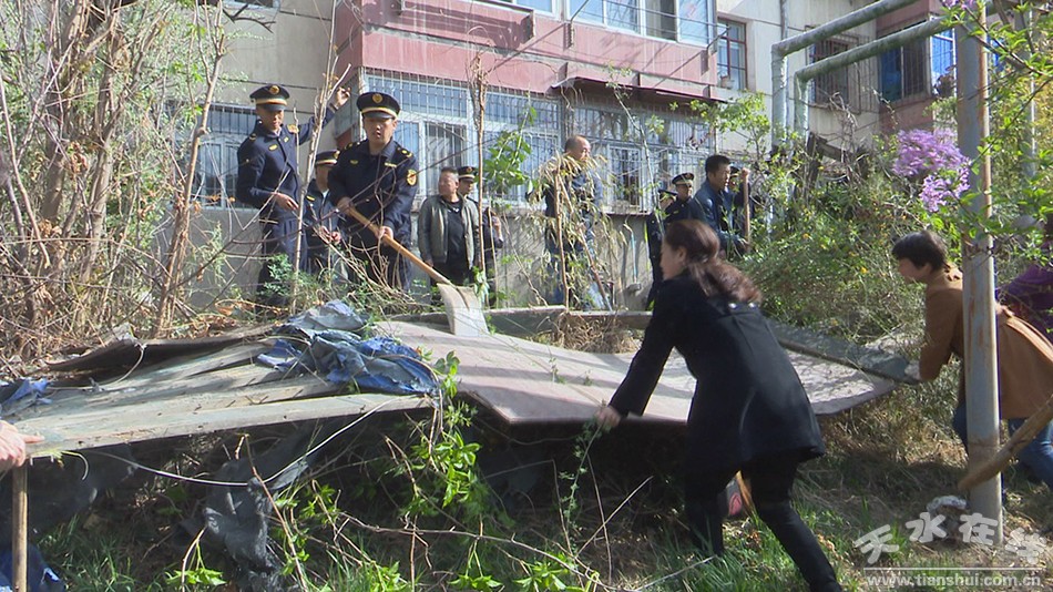秦州区融媒体中心4月19日讯(记者王歧)近日,秦州区七里墩街道联合区综合执法、环卫、公安等部门,对罗玉小区环境卫生开展综合整治。