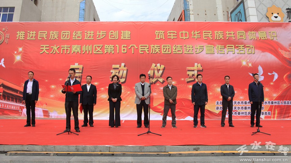 开展第16个民族团结进步宣传月活动,是秦州区委、区政府进一步贯彻落实党的民族政策、加强民族团结、维护社会稳定和谐、促进秦州经济社会发展的重要举措,是深入推进全省民族团结进步示范区创建活动的有效抓手。今年是新中国成立70周年,也是秦州区创建全省民族团结进步示范区的关键之年。全区各级各部门紧紧围绕“各民族共同团结奋斗、共同繁荣发展”宣传主题,广泛深入宣传党和国家民族政策法规,不断筑牢中华民族共同体意识。同时,要围绕脱贫攻坚,突出宣传教育的实效性,全力营造全区各民族群众“共同团结进步、共同繁荣发展”的良好社会氛围。