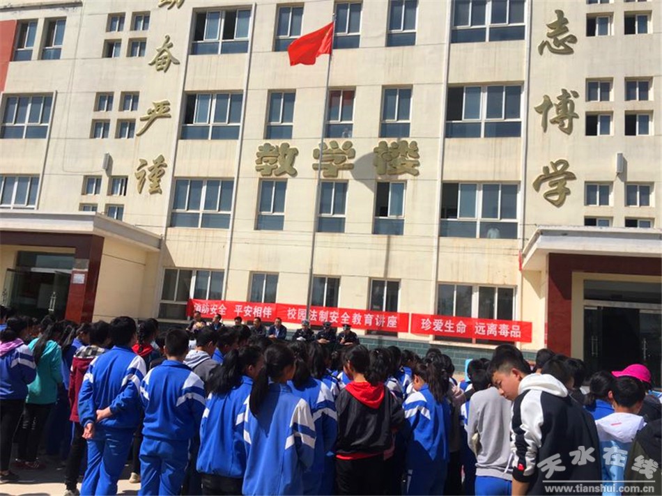 秦州区融媒体中心5月30日讯 为加强中梁镇(辖区)校园安全管理,提高学生安全防护意识,促进在校学生健康成长,近日,中梁司法所联合中梁派出所组织民警在中梁中学开展以“珍爱生命、拒绝毒品”为主题的禁毒宣传活动。