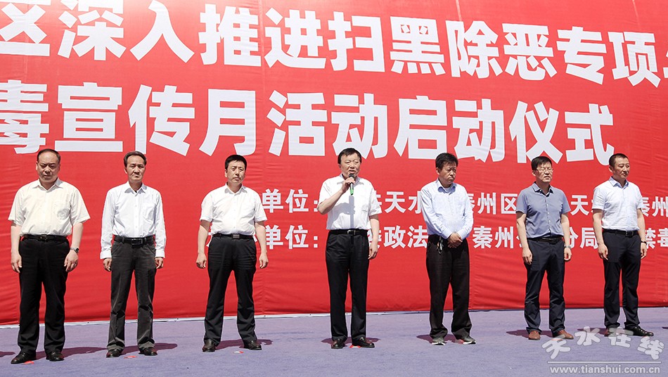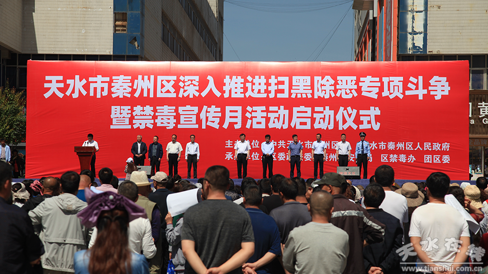 秦州区融媒体中心6月3日讯 (记者杨旭) 今天上午,秦州区深入推进扫黑除恶专项斗争暨禁毒宣传月活动启动仪式在龙城广场举行。市委常委、秦州区委书记雷鸣,秦州区人大常委会主任宋丕林,秦州区委副书记、区长刘文玺,秦州区政协主席、区委常委、纪委书记、监委主任毛更生出席启动仪式。
