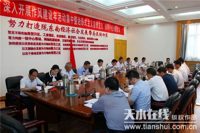 会议传达学习了习近平总书记关于作风建设的重要论述和指示批示精神以及中央和省、市委关于作风建设的部署要求;传达学习了《中共甘肃省纪律检查委员会关于开展“四察四治”专项行动深入整治形式主义官僚主义的通知》,审议通过了秦州区关于作风建设的相关方案,听取了相关工作进展情况汇报。