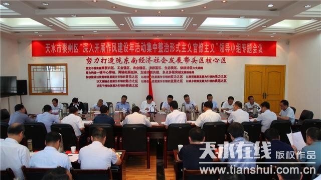 秦州区融媒体中心6月28日讯 (记者 张继明 李欣) 6月26号下午,秦州区召开深入开展作风建设年活动集中整治形式主义官僚主义领导小组专题会。市委常委、秦州区委书记、秦州区作风建设年活动集中整治形式主义官僚主义领导小组组长雷鸣强调,全区各级党员领导干部以高度负责的精神、旗帜鲜明的态度、狠抓到底的决心、扎实有效的工作,推动作风建设年活动向纵深推进。