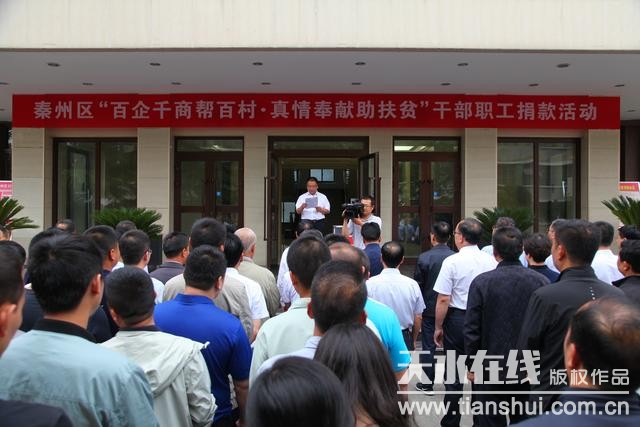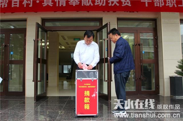 秦州区融媒体中心6月28日讯 (记者 魏朝辉 张继明) 为积极响应“百企千商帮百村﹒真情奉献助扶贫”活动,6月27日上午,秦州区四大组织领导和机关干部职工率先开展捐款活动,市委常委、秦州区委书记雷鸣,秦州区人大常委会主任宋丕林,秦州区委副书记、区长刘文玺,秦州区政协主席毛更生带头捐款。