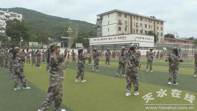 在罗玉中学的操场上,学生们穿着统一的校服,迈着整齐的步伐,喊着嘹亮的口号,正在进行紧张的排练。据了解,罗玉中学参加表演的学生有750人,自7月16号开始进行排练。